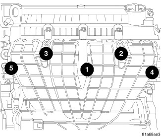 27. Install intake manifold and tighten bolts to 24 Nm (18 ft. lbs.) as shown.