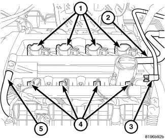 32. Install PCV hose (5).