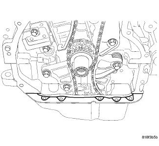 17. Install oil pan to timing chain cover lower retaining bolts (1) and tighten M6 bolts to 9 Nm (80 in. lbs.).