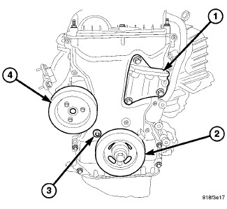 18. Install water pump pulley (4) and tighten three bolts to 9 Nm (80 in. lbs.).
