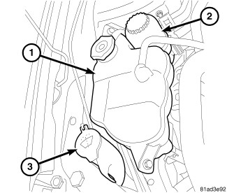 30. Install coolant recovery reservoir (1). Tighten mounting bolts to 10 Nm (89 in. lbs.).