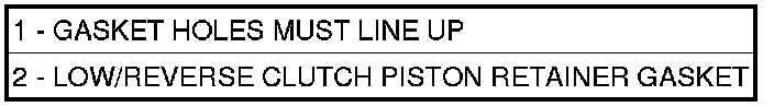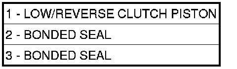 NOTE: The Low/Reverse Clutch Piston has bonded seals which are not individually serviceable. Seal replacement requires replacement of the piston assembly.