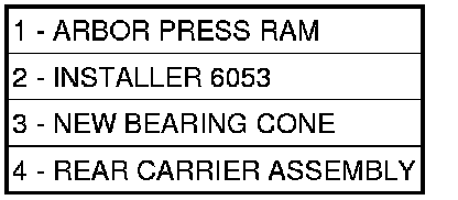 13. Install rear carrier bearing cone using Installer (2) using an Arbor Press (1)(Figure 13).