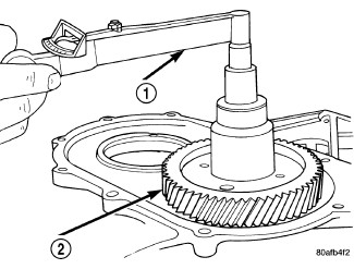21. Using an Inch Pound Torque Wrench (1)(Figure 21), check output shaft turning torque. Output shaft turning torque should be within 3-8 in. lbs. If the turning torque is too high, install a 0.04 mm (0.0016 in.) thicker shim. If the turning torque is too low, install a 0.04 mm (0.0016 in.) thinner shim. Repeat until the proper turning torque of 3-8 in. lbs. is obtained.