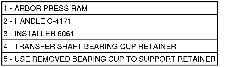 32. Install transfer shaft bearing cup into retainer (4)(Figure 31) using Installer (3).