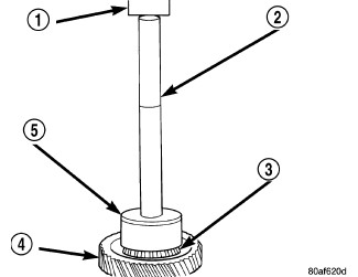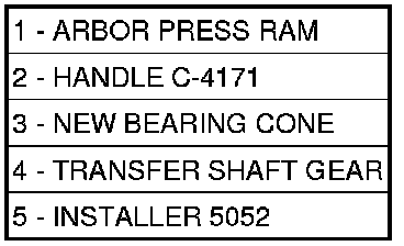 34. Install transfer gear bearing cone to transfer gear (4)(Figure 33) using Installer , (5) Handle and an Arbor Press.