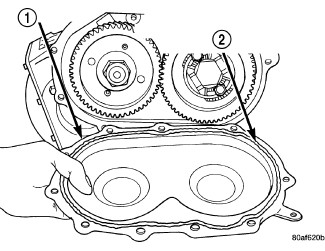 40. Install a bead of Mopar(R) ATF RTV (MS-GF41) (2)(Figure 37) to transfer gear cover.