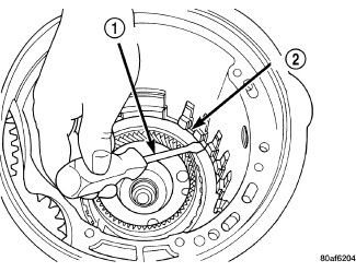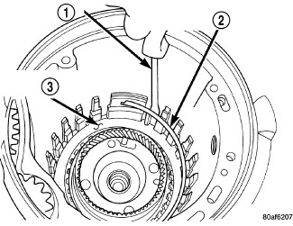 42. Install low/reverse clutch pack (1,2)(Figure 39). Leave uppermost disc out until snap ring is installed.