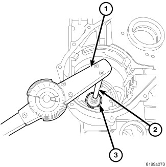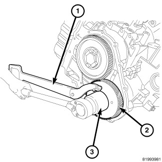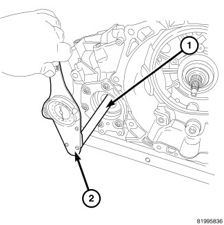 74. Install compounder End Play Tool (2) through the hole in the front case.
