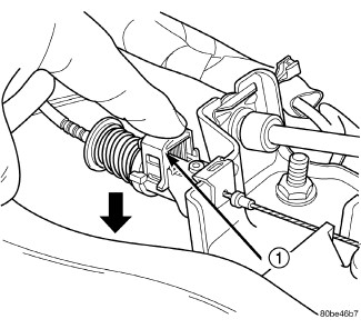 7. If the interlock cable is not being replaced, the lock pin will not exist. Pull outward on cable locking clip to allow cable to self adjust. Press clip (1)(Figure 7) down to lock in place.