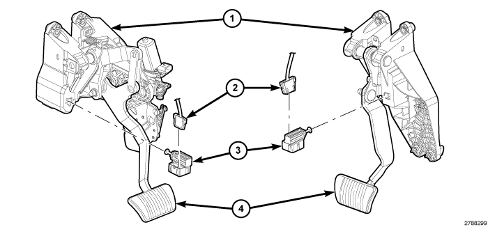 3. Locate the brake lamp switch (3) on the pedal support bracket (1) below the steering column.