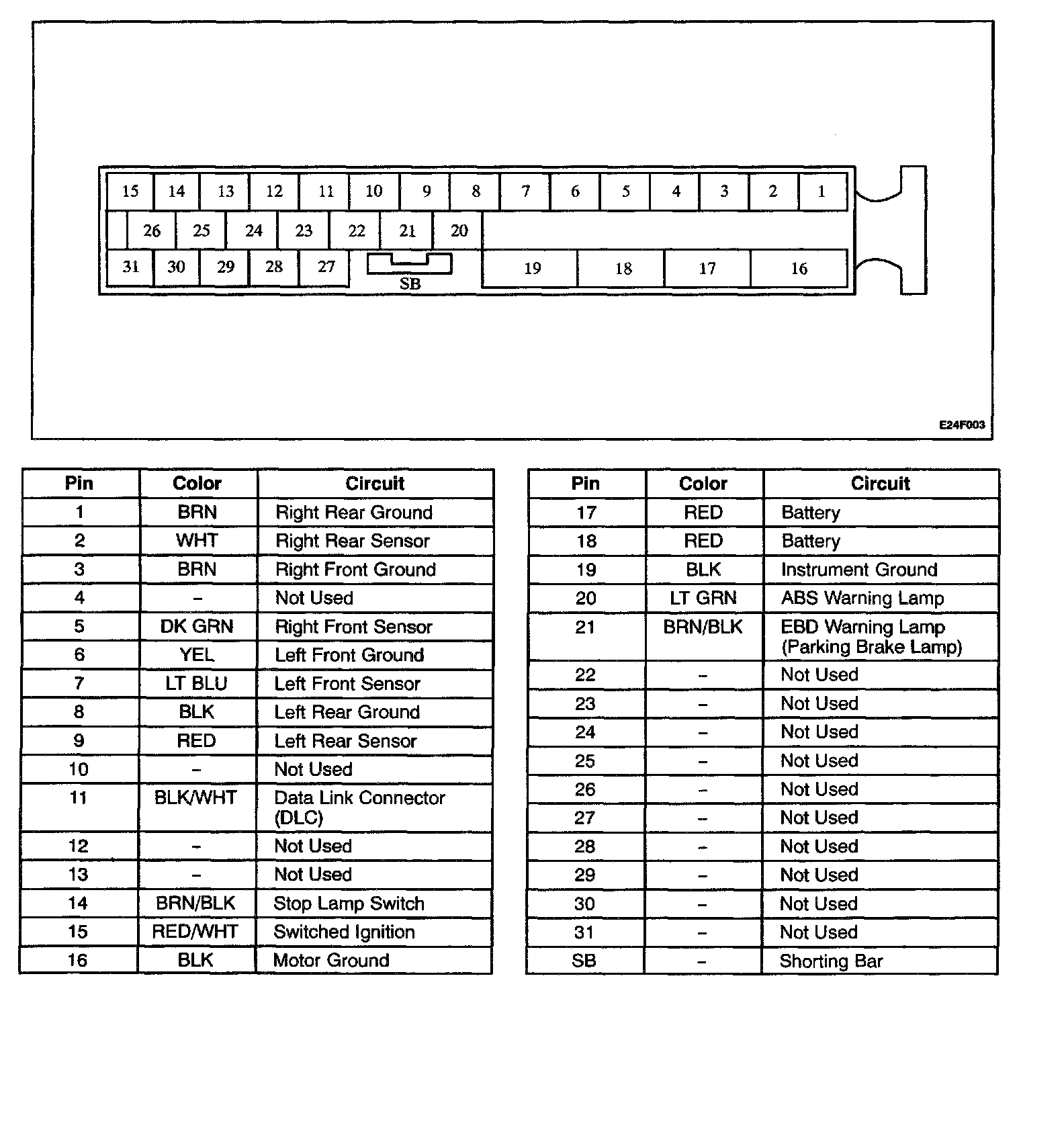 EBCM Connector Face View: