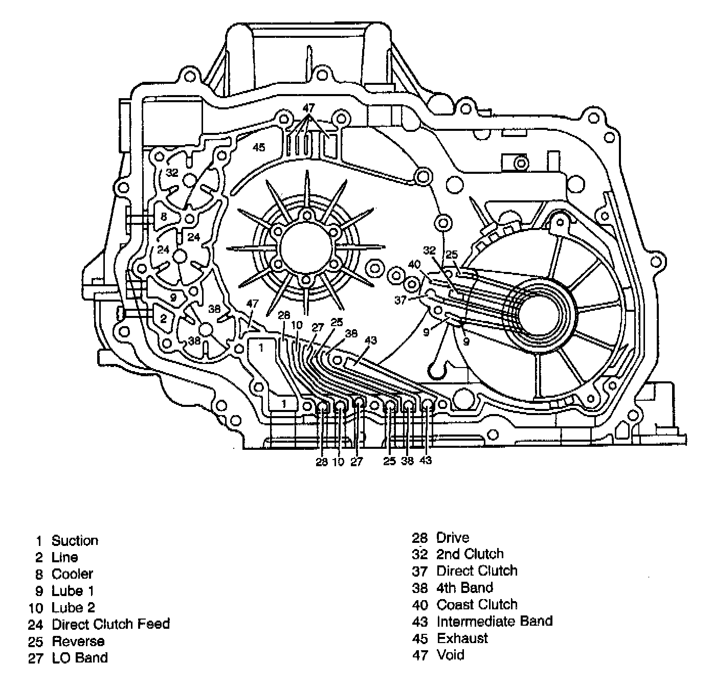 CONTROL VALVE BODY CHANNELS - OIL PUMP SIDE