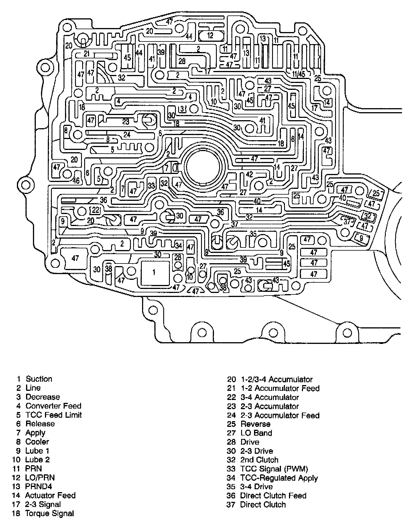 CHANNEL PLATE PASSAGES - CONTROL VALVE BODY SIDE