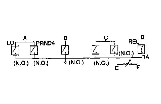 The pressure switch assembly (TR switch) is attached to the valve body and contains six fluid pressure switches and the transaxle temperature sensor (refer to the separate description of the temperature sensor). Five of the fluid pressure switches (PRND4, DRIVE, LO, D21, REV) are normally open and are used to indicate the position of the manual valve. The PCM uses this information to control line pressure, TCC apply and release and shift solenoid operation.