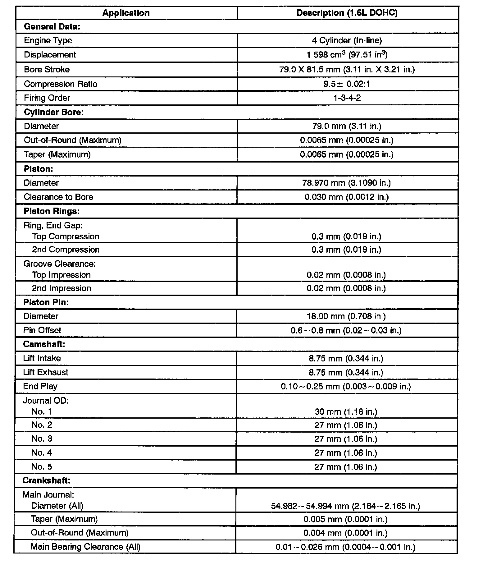 ENGINE SPECIFICATIONS