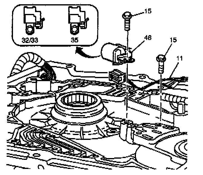 5. Install the wire harness retainer and wire harness retainer bolt. Tighten the wire harness retainer bolt to 9 ft. lbs. (12 Nm).