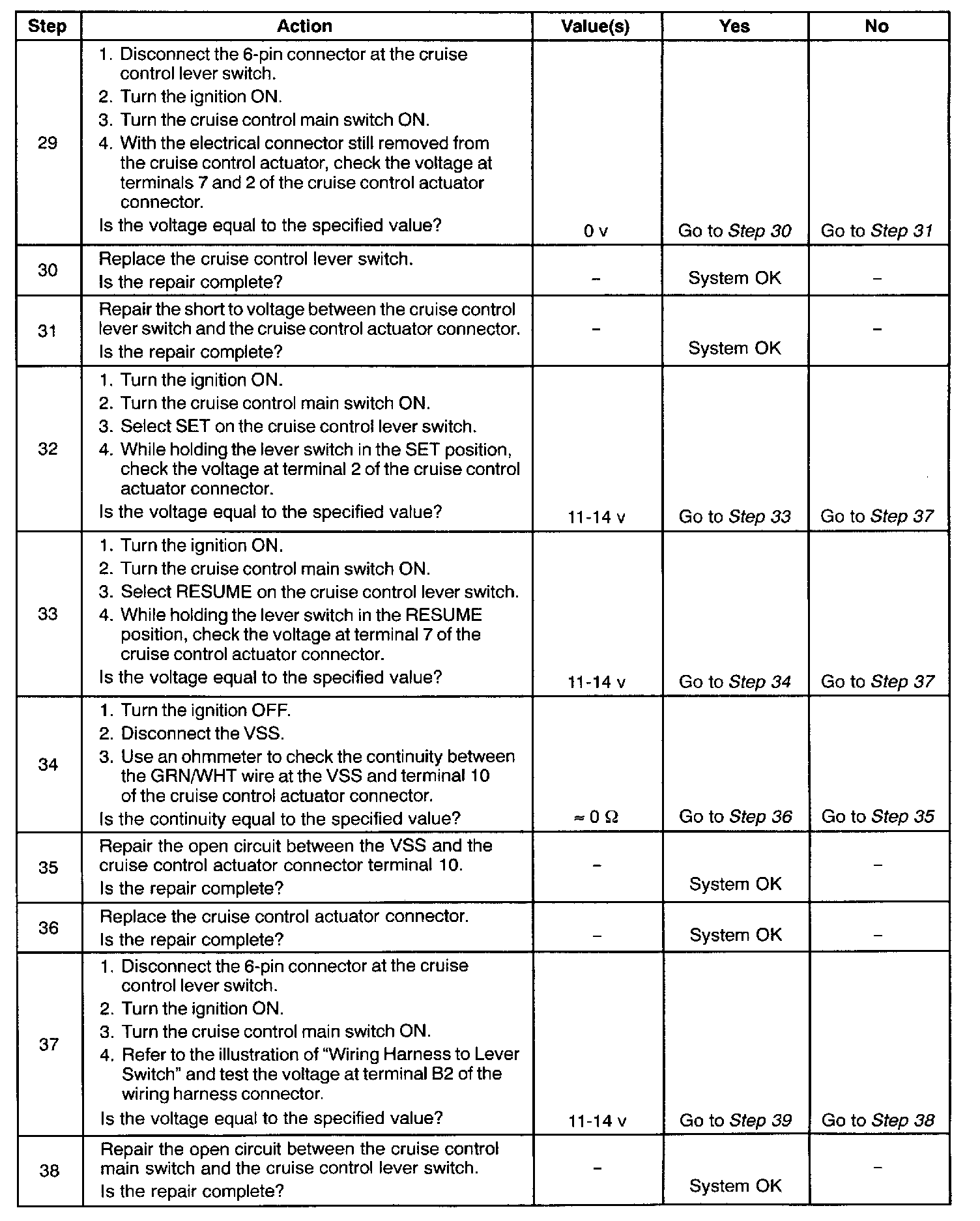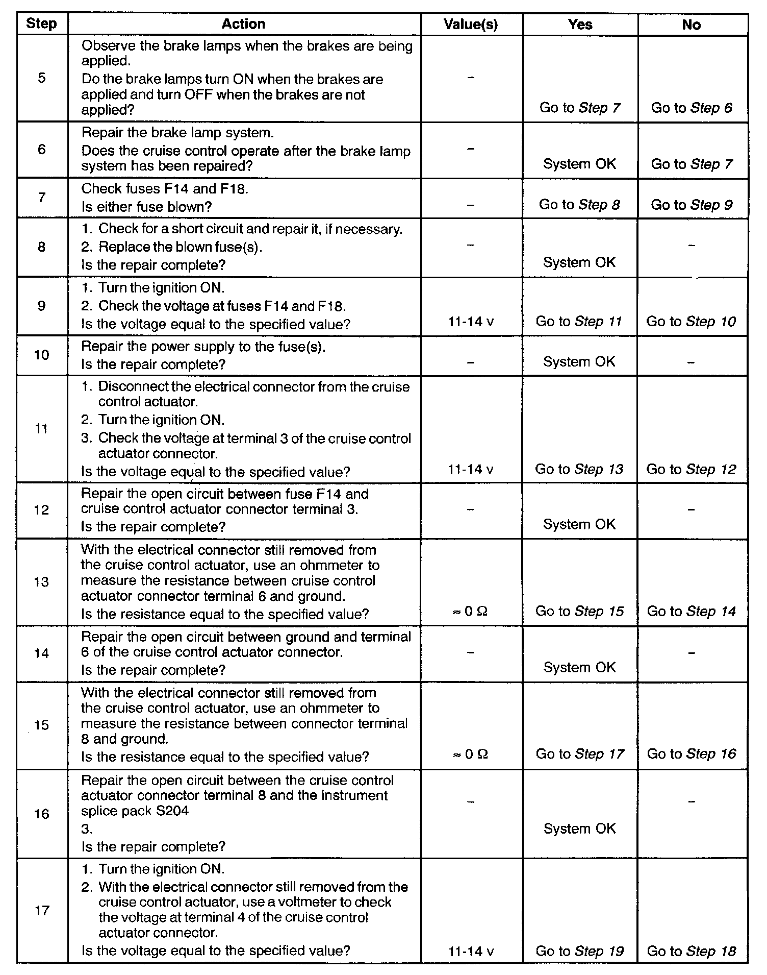 CRUISE CONTROL DIAGNOSIS