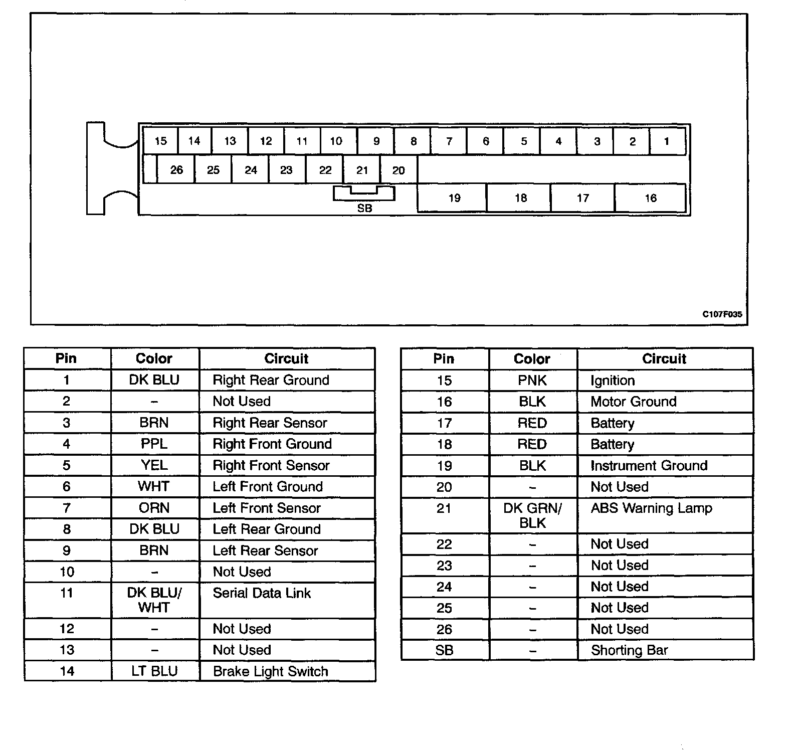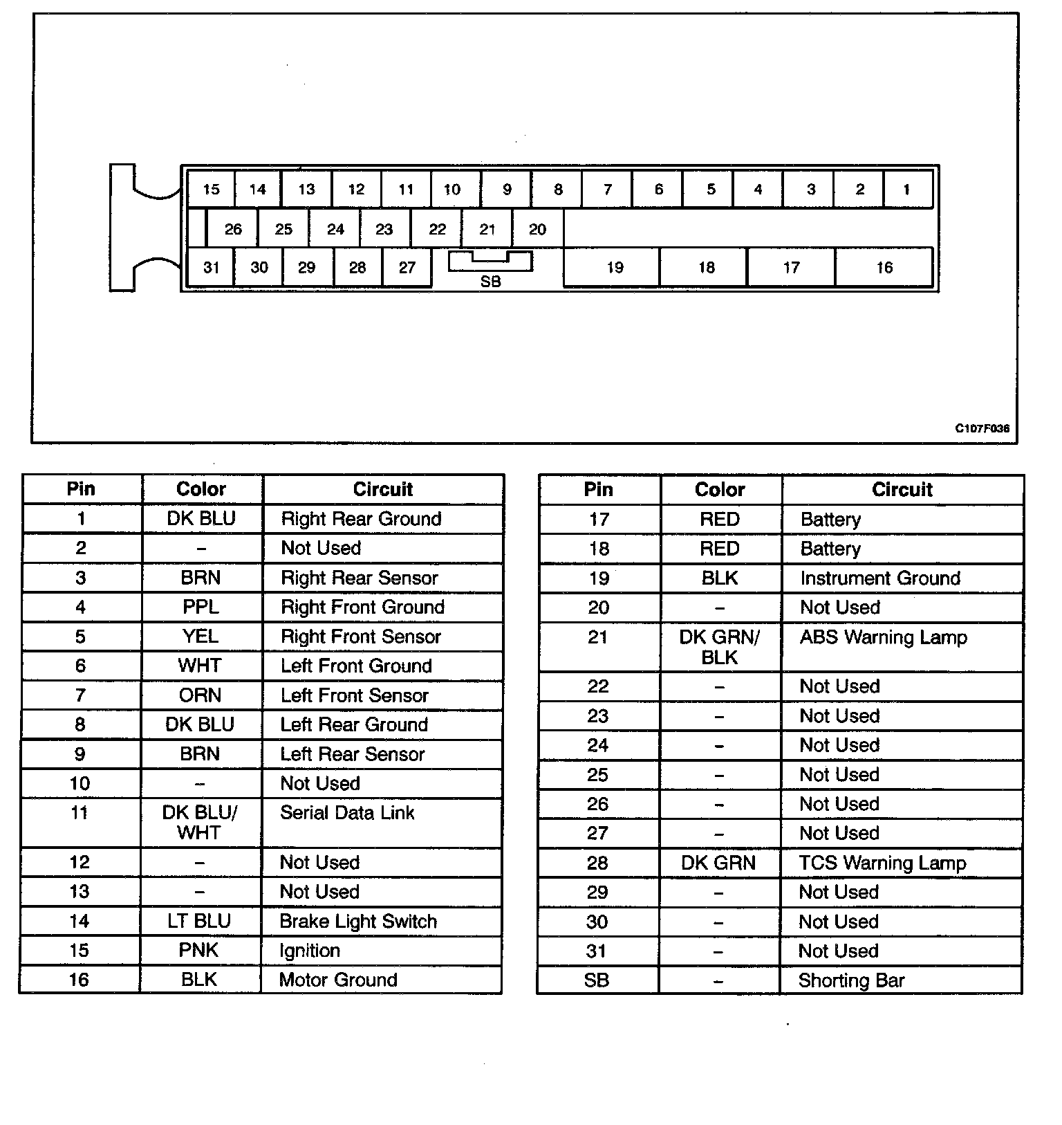 CONNECTOR FACE VIEW (WITHOUT TRACTION CONTROL SYSTEM)