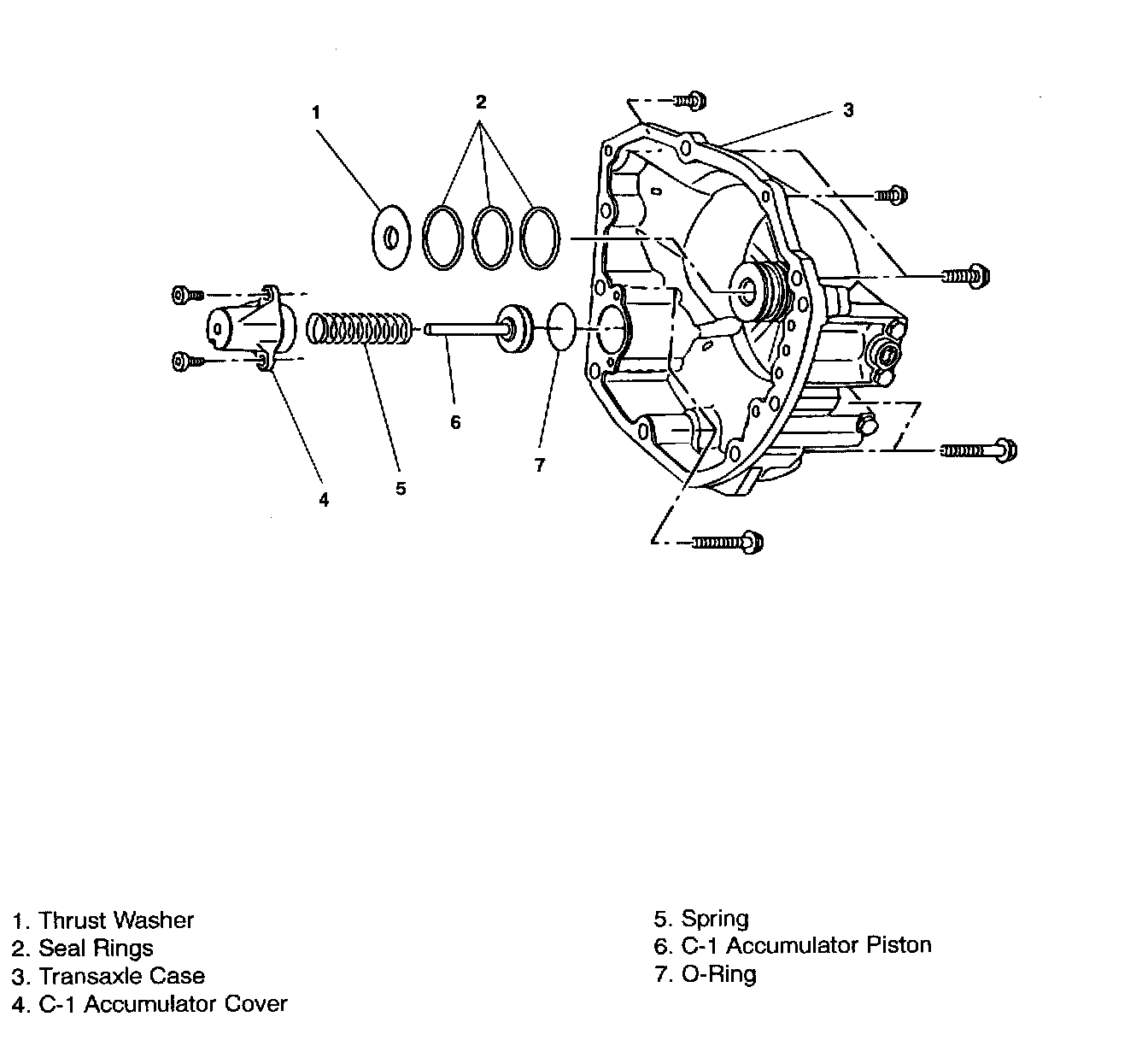 TRANSAXLE REAR CASE AND C-1 ACCUMULATOR PISTON