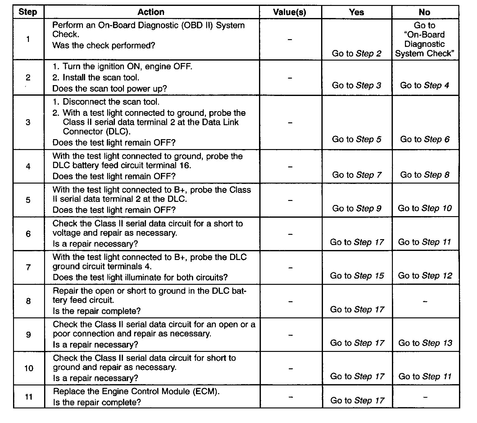 16. The scan tool or associated cables could be malfunctioning. Refer to the scan tool's manual for repair information.