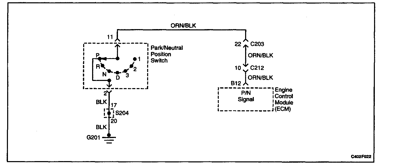 The Engine Control Module (ECM) supplies ignition voltage through a current limiting resistor to the signal wire and senses a closed switch when the voltage on the signal wire drops to less than 1 volt. The ECM uses the PNP signal as one of the inputs to control idle air and spark timing.