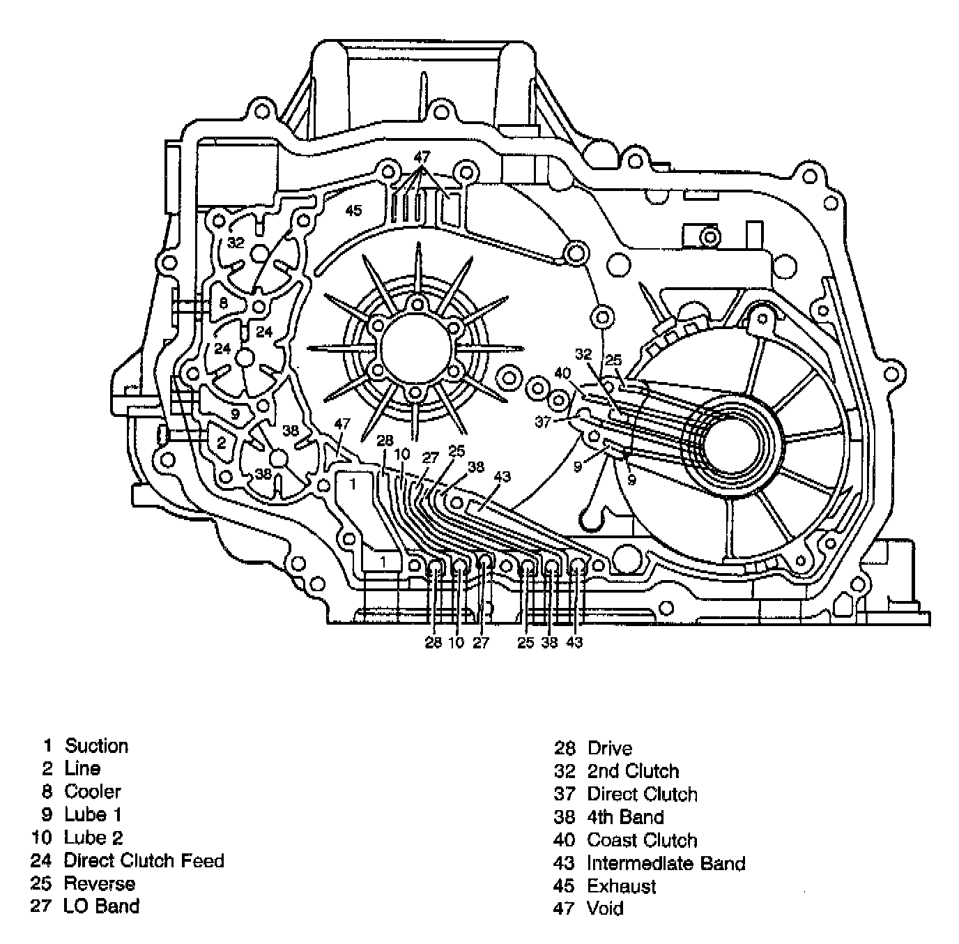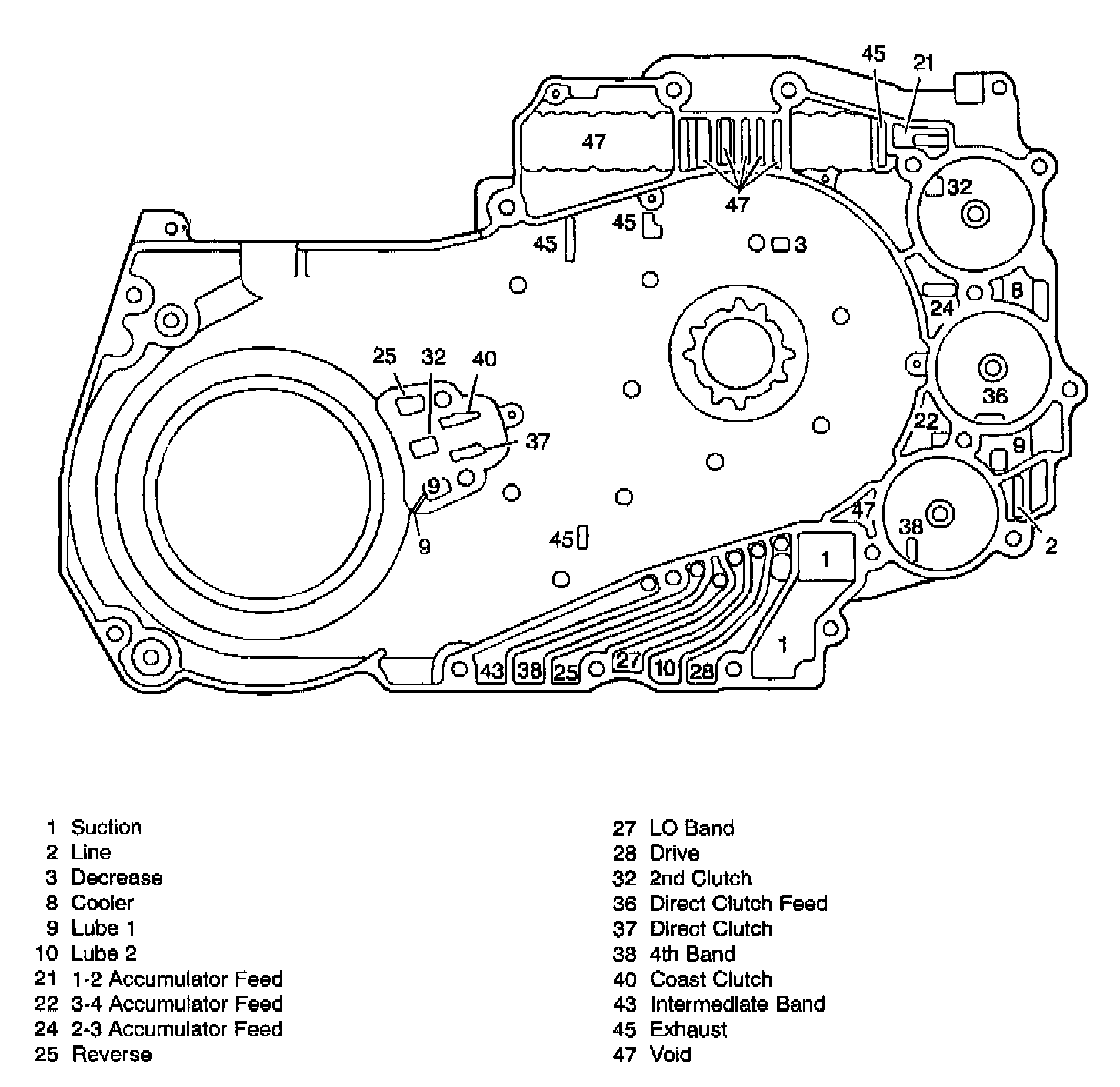 CONTROL VALVE BODY CHANNELS - OIL PUMP SIDE