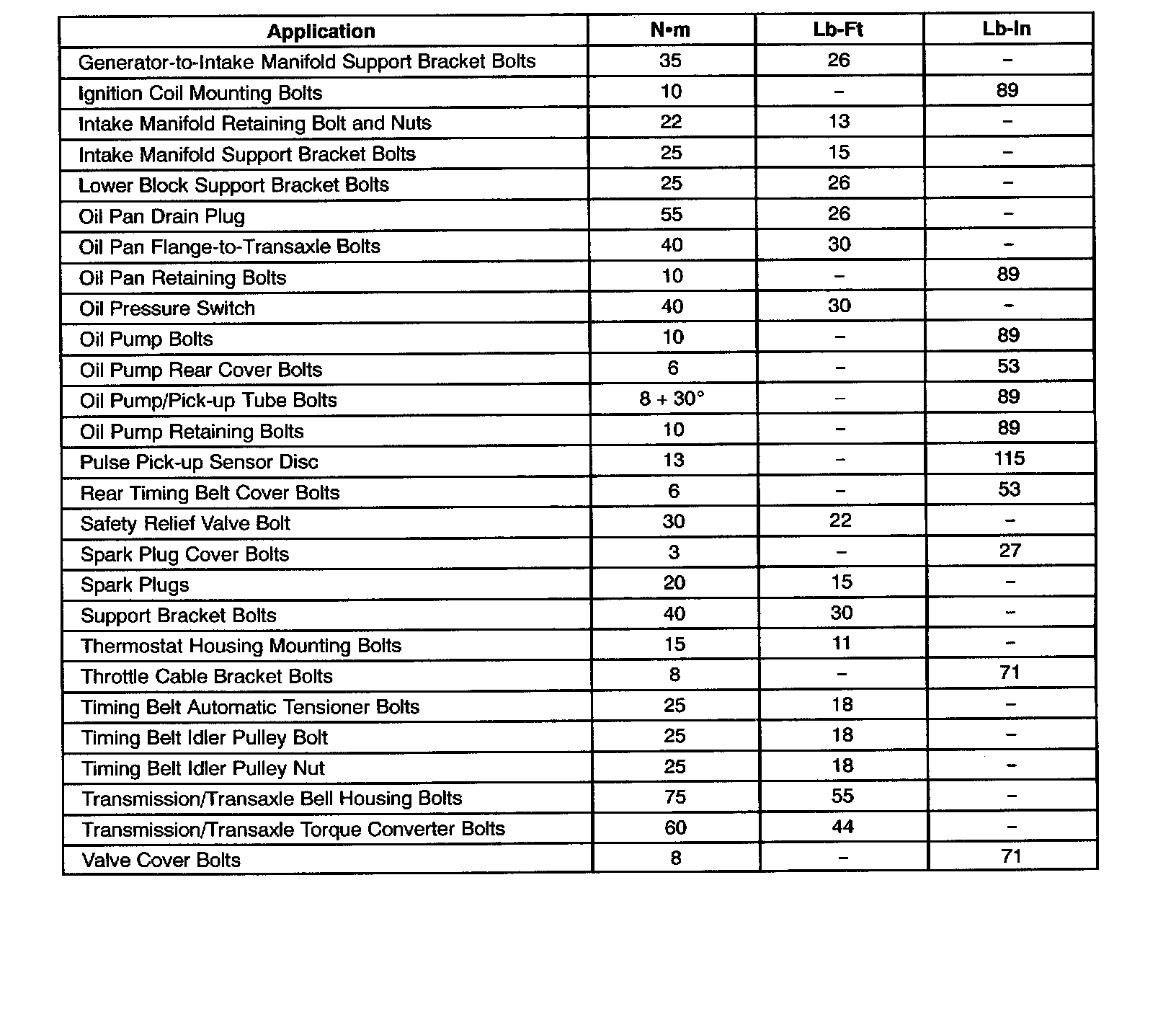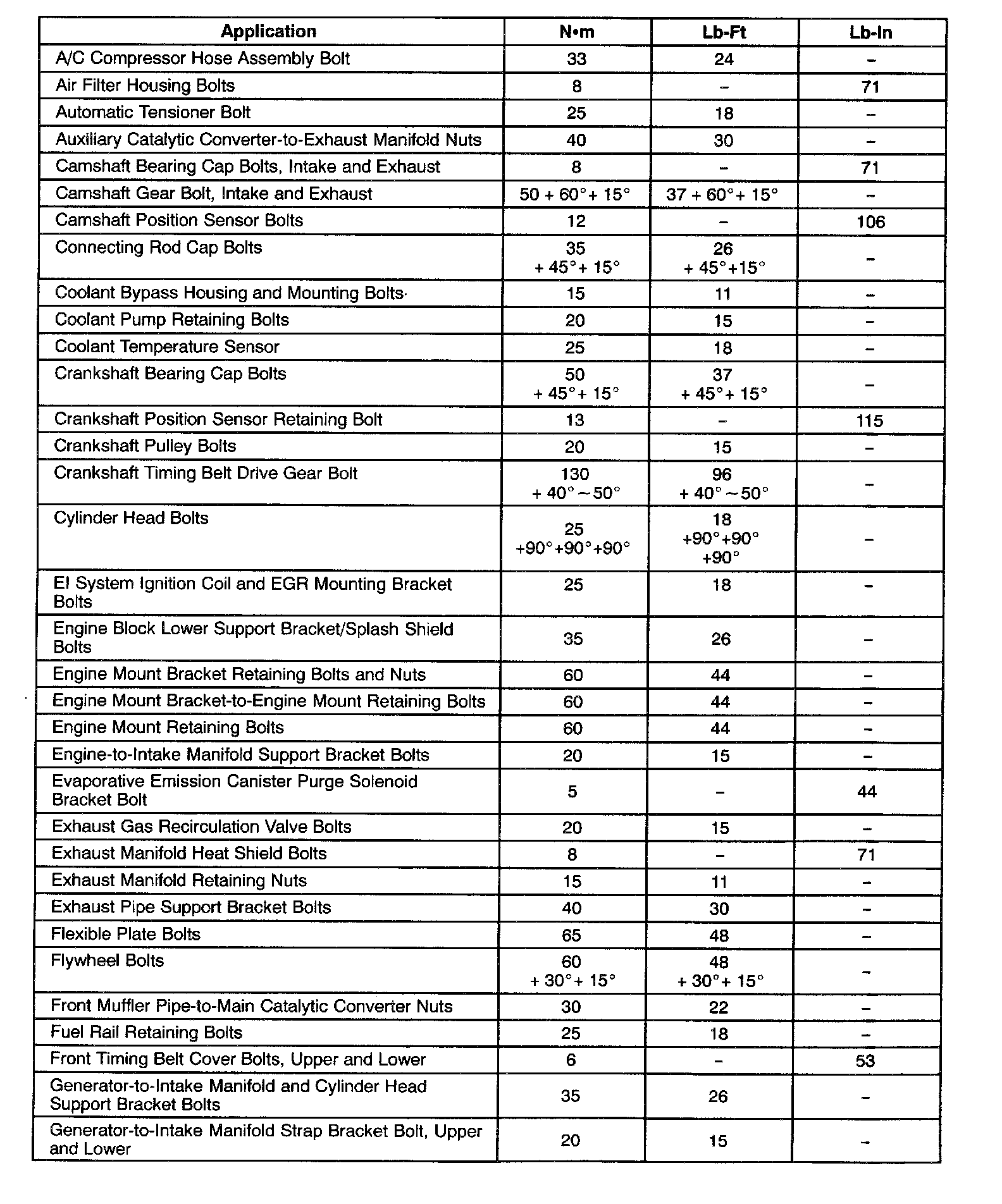 Fastener Tightening Specifications