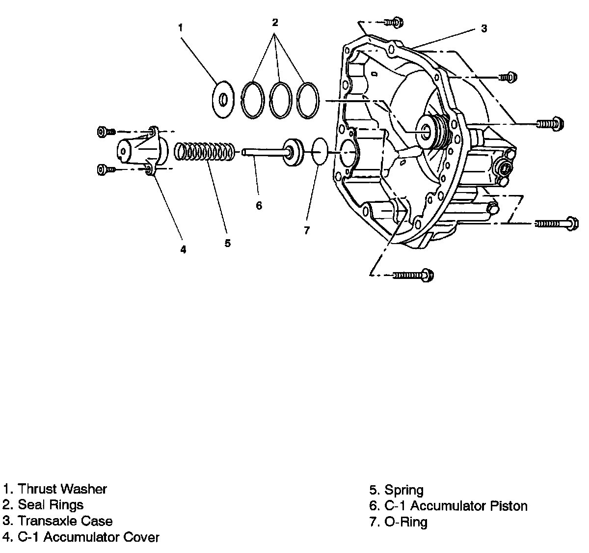 TRANSAXLE REAR CASE AND C-1 ACCUMULATOR PISTON