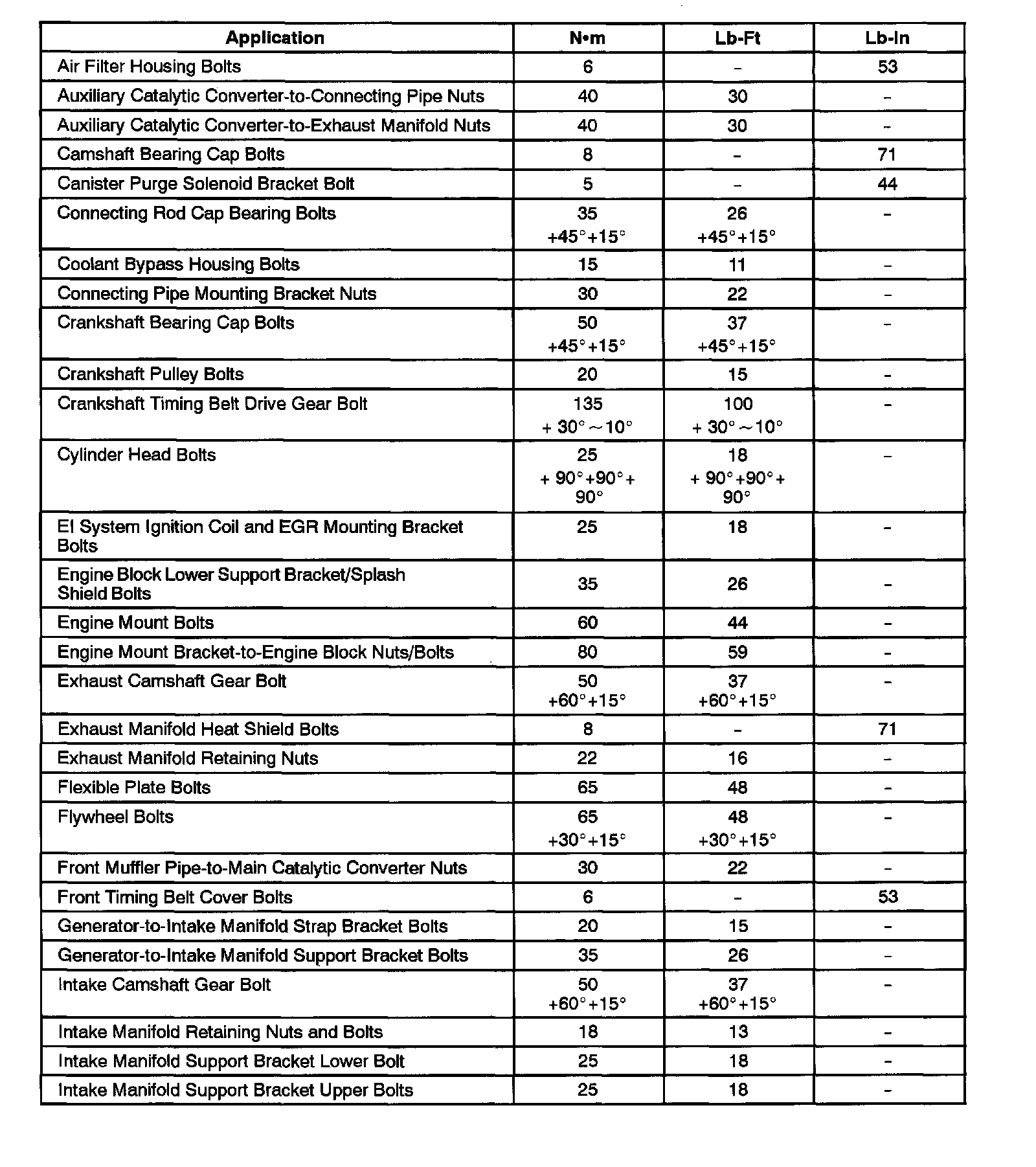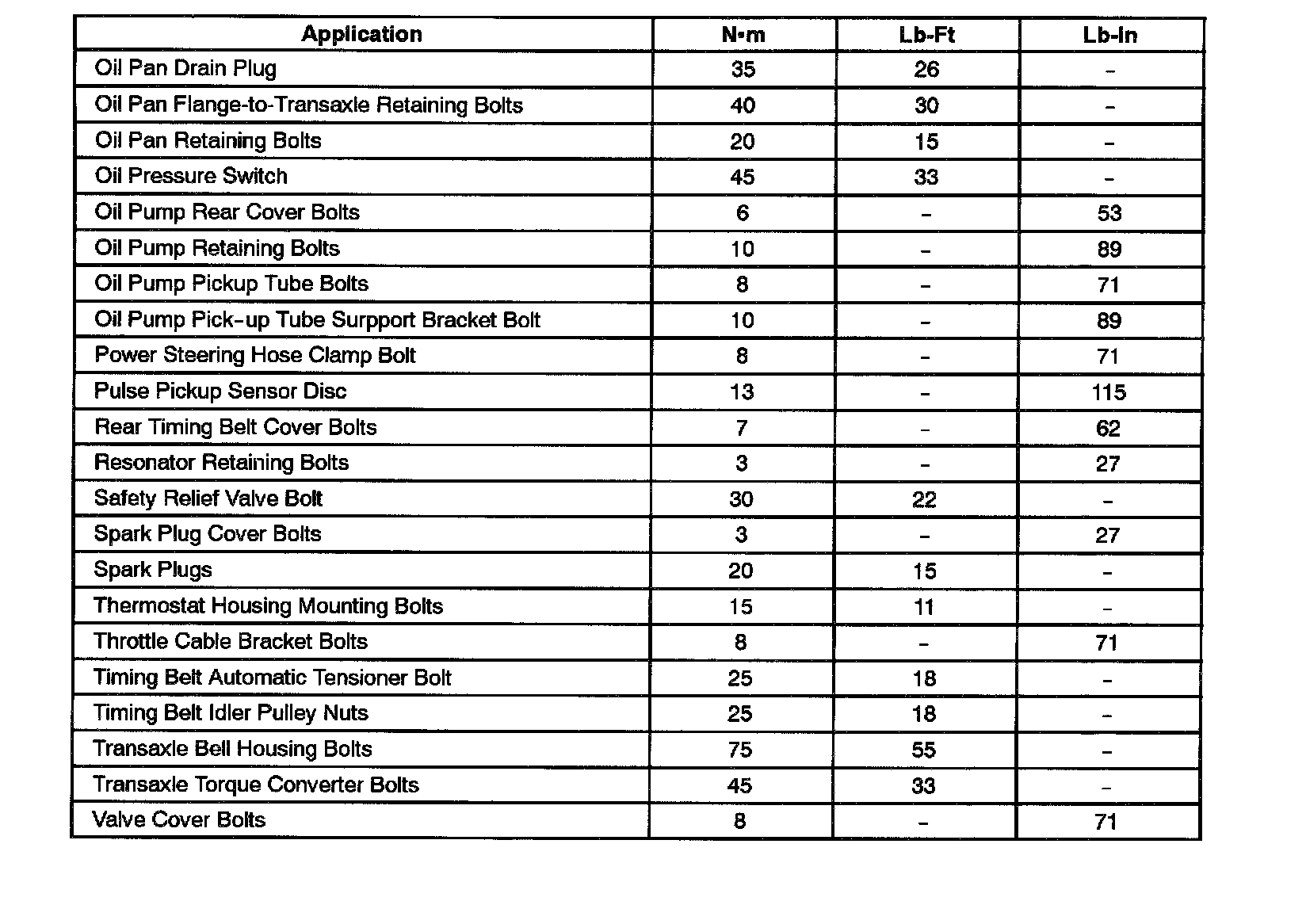 Fastener Tightening Specifications