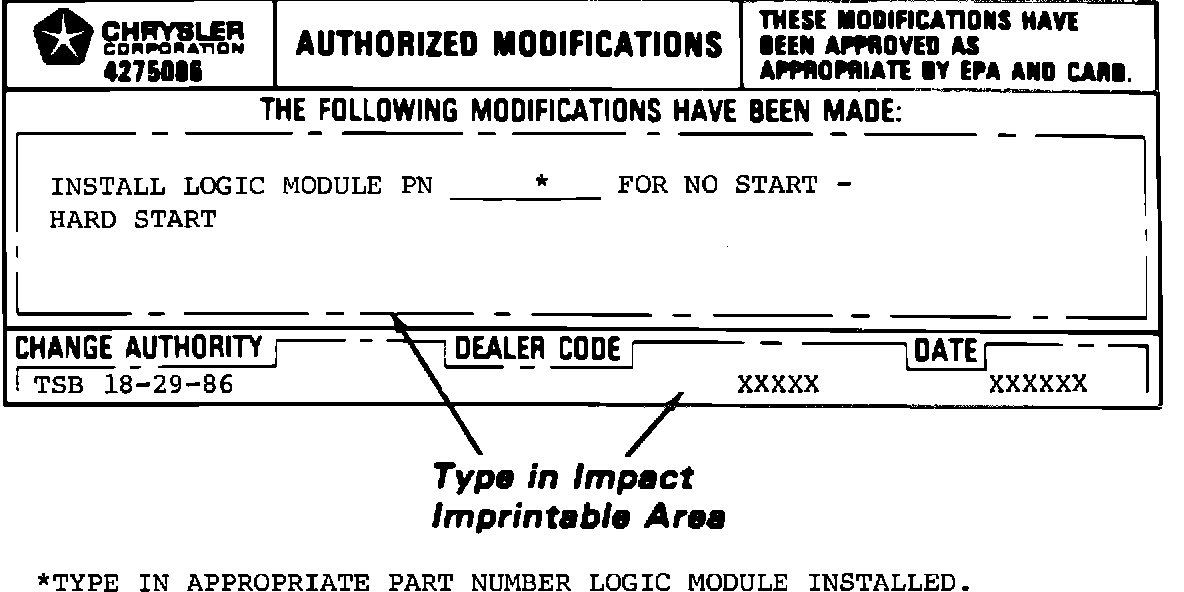 Be sure all systems are operating as designed, using the appropriate Driveability Test Procedures. If no problems are found, install the appropriate logic module listed below.