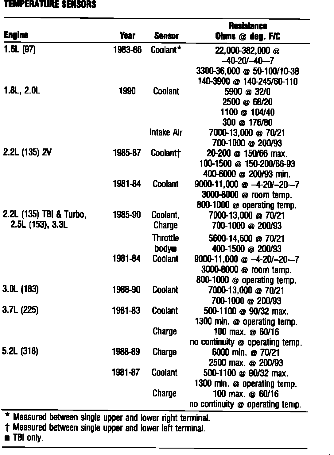 Throttle Body Temperature Sensor: Specifications