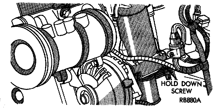9. Loosen distributor hold-down arm screw just enough so the distributor housing can be rotated in its mounting. Turn distributor housing until specified label value is reached. Tighten the hold-down arm screw and recheck timing. When timing is acceptable, recheck curb idle rpm. If engine rpm is not at or below the curb idle rpm shown on the label, reset engine rpm and recheck timing. Repeat above until both engine rpm and timing are acceptable.