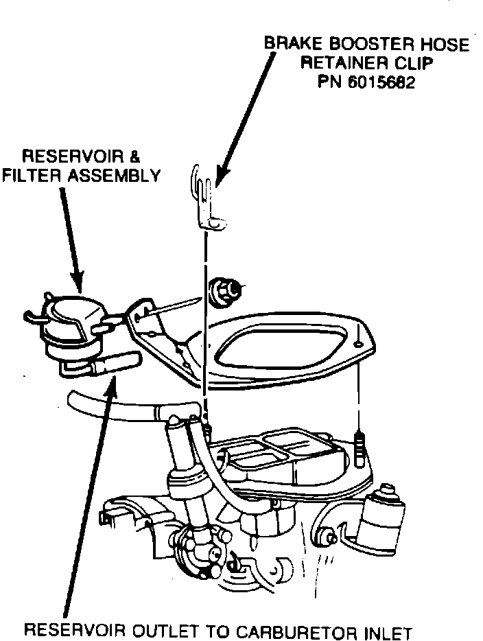 11. Connect the hose on the reservoir outlet (bottom) to the carburetor inlet. Secure with hose clamp, PN 6500651, and torque to 10 inch pounds.