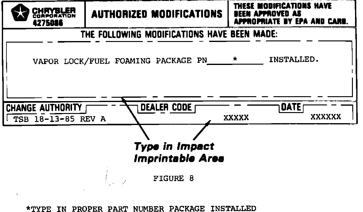 13. Type Authorized Modification Label, PN 4274086, as shown in Figure 8 and attach near VECI label.