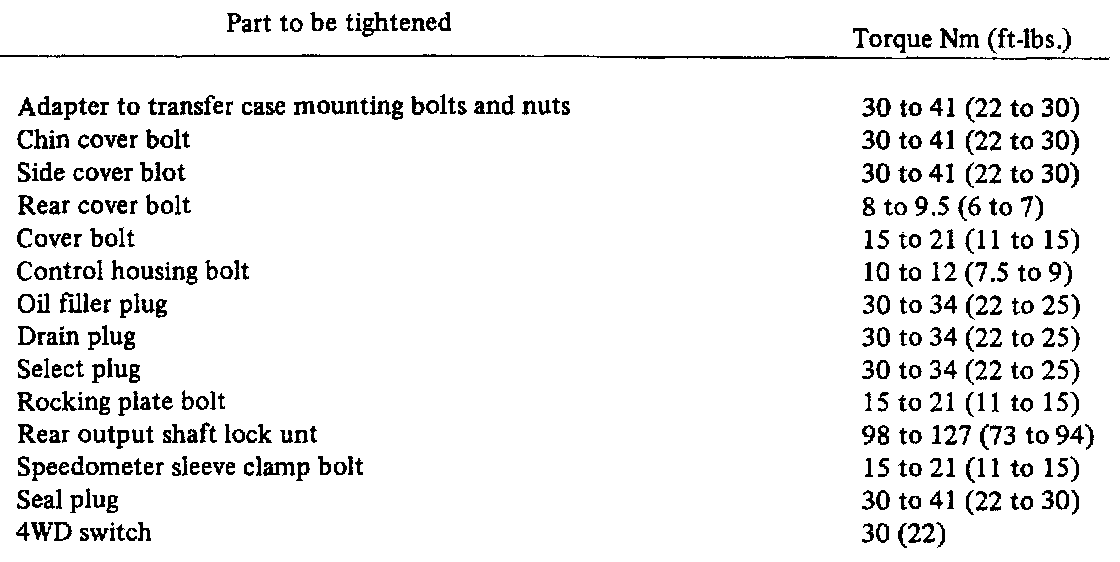 Torque Specifications