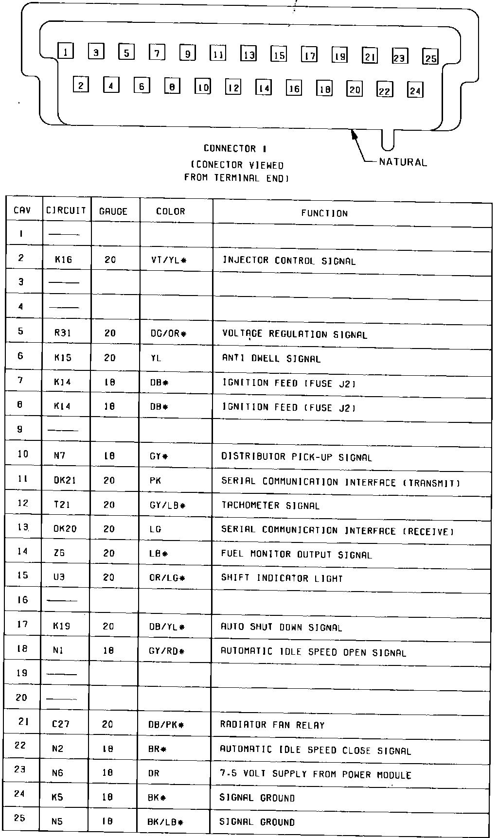 Fig. 8 Logic Module Connectors (Less Turbocharger, Part 1 of 2). 1985:
