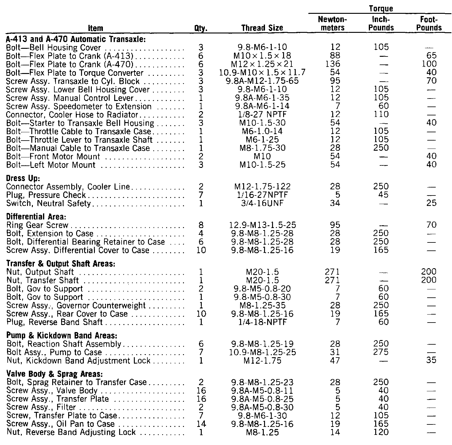 Torque Specifications