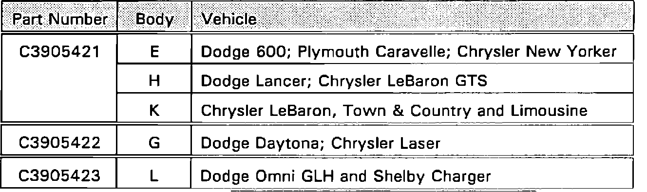 1986 Model Year Dodge 600, Lancer, Omni GLH, Shelby Charger and Daytona; Plymouth Caravelle; and Chrysler New Yorker, Laser, LeBaron, Town & Country, LeBaron GTS and Limousine Vehicles Equipped With a 2.2L Turbocharged Engine and Federal Emissions Control System.