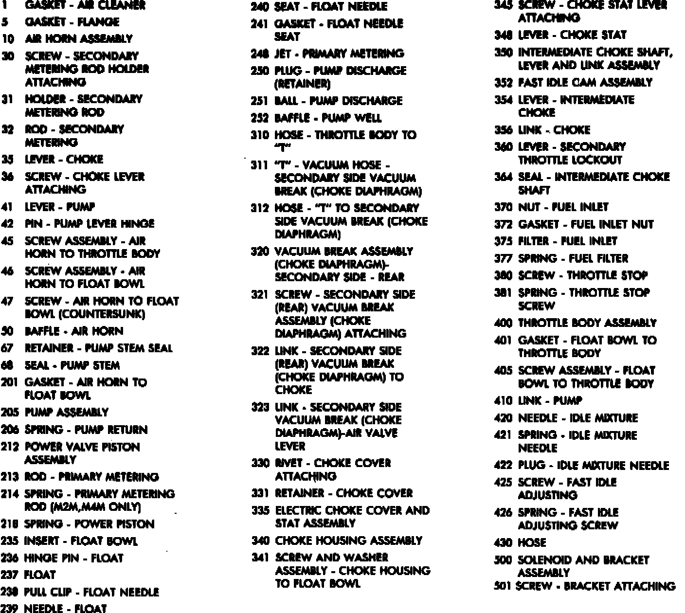 Fig. 2 Exploded view of Rochester Quadrajet carburetor (Part 1 of 2):