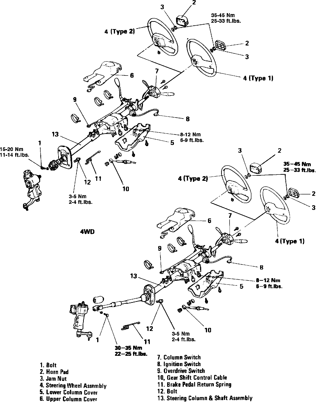 Fig. 10 Exploded view of steering column assembly. 1987-88 Ram 50: