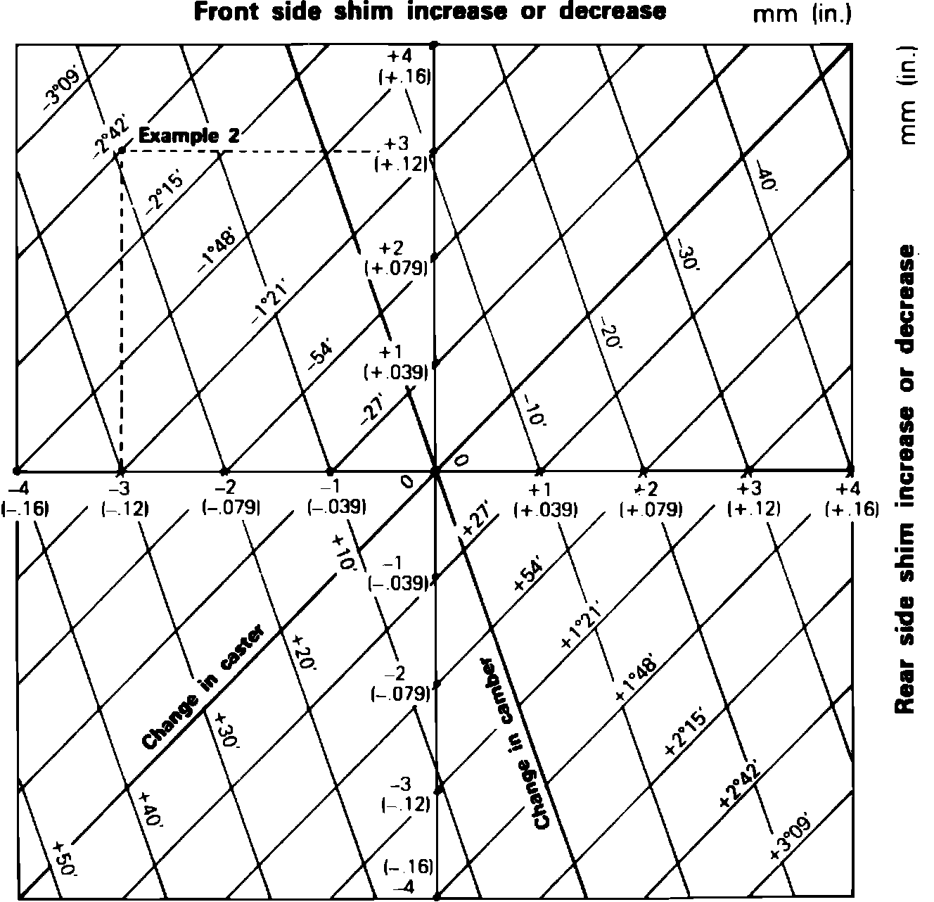 c. Difference in shim thickness between front and rear bolts must not exceed 0.16 inch (4 mm).