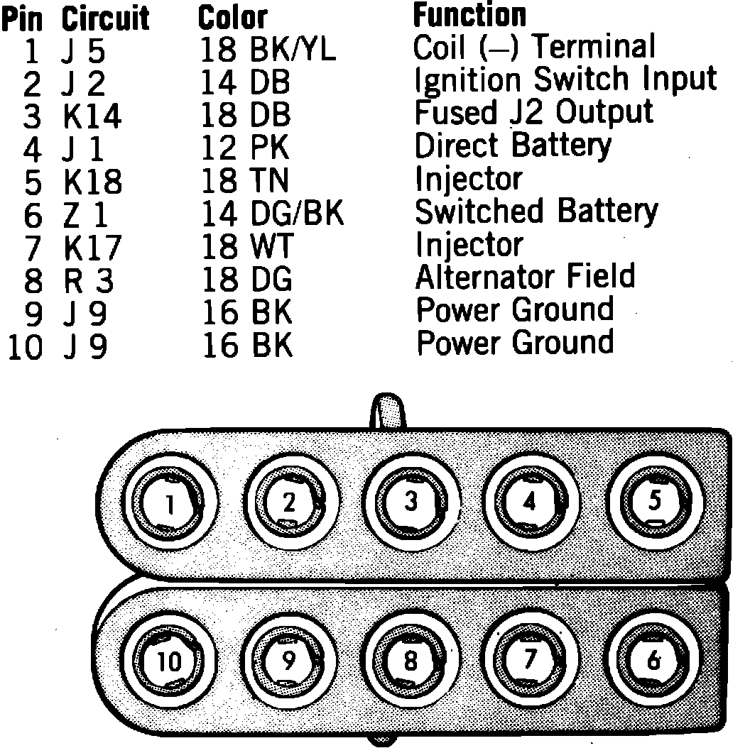 Fig. 12 Power module 10 pin connector terminal identification. 1987 models: