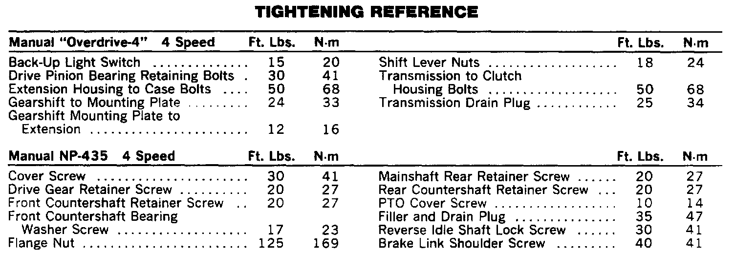 Torque Specifications