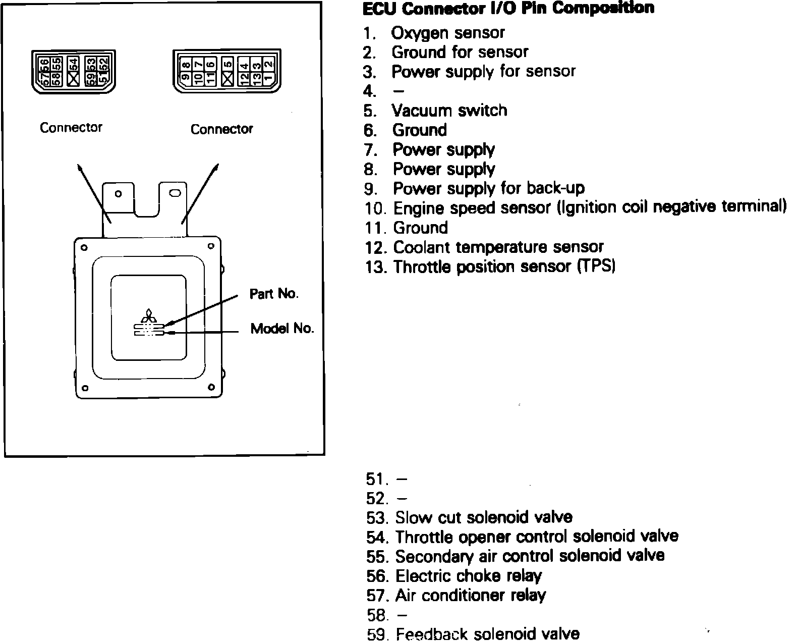 Carburetor control unit terminal location. 1987-88 Ram 50 & Ram Raider: