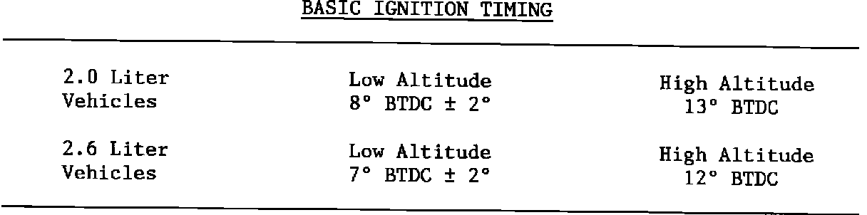 To improve the above altitude-related condition, the basic timing must be advanced an additional 5~. The correct timing specifications are shown in Figure 1. On vehicles not so equipped, an altitude compensator must be installed to prevent an over-rich condition from occurring.
