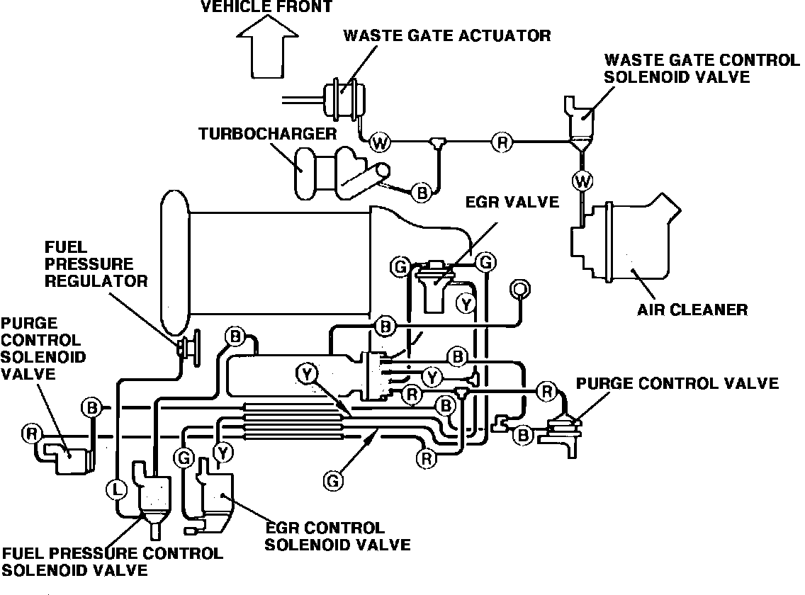 The Non-California Turbo equipped models make use of a Dual Nipple EGR Valve which is controlled by a coolant temperature sensitive Thermo Valve. The second nipple on the EGR Valve is used to allow the valve to be opened by boost during the operation of the Turbocharger.