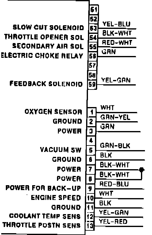 Carburetor control unit terminal location. 1989 Ram 50 & Ram Raider: