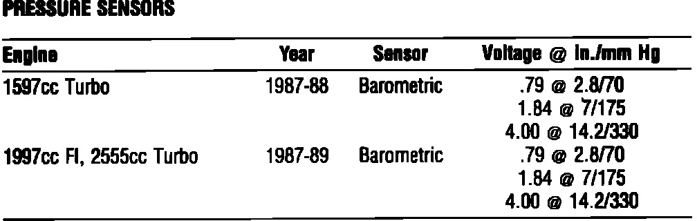 Manifold Pressure/Vacuum Sensor: Specifications