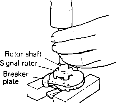 6. Place breaker plate on a soft base (wooden block) and lightly tap on rotor shaft to remove signal rotor. Remove breaker plate.